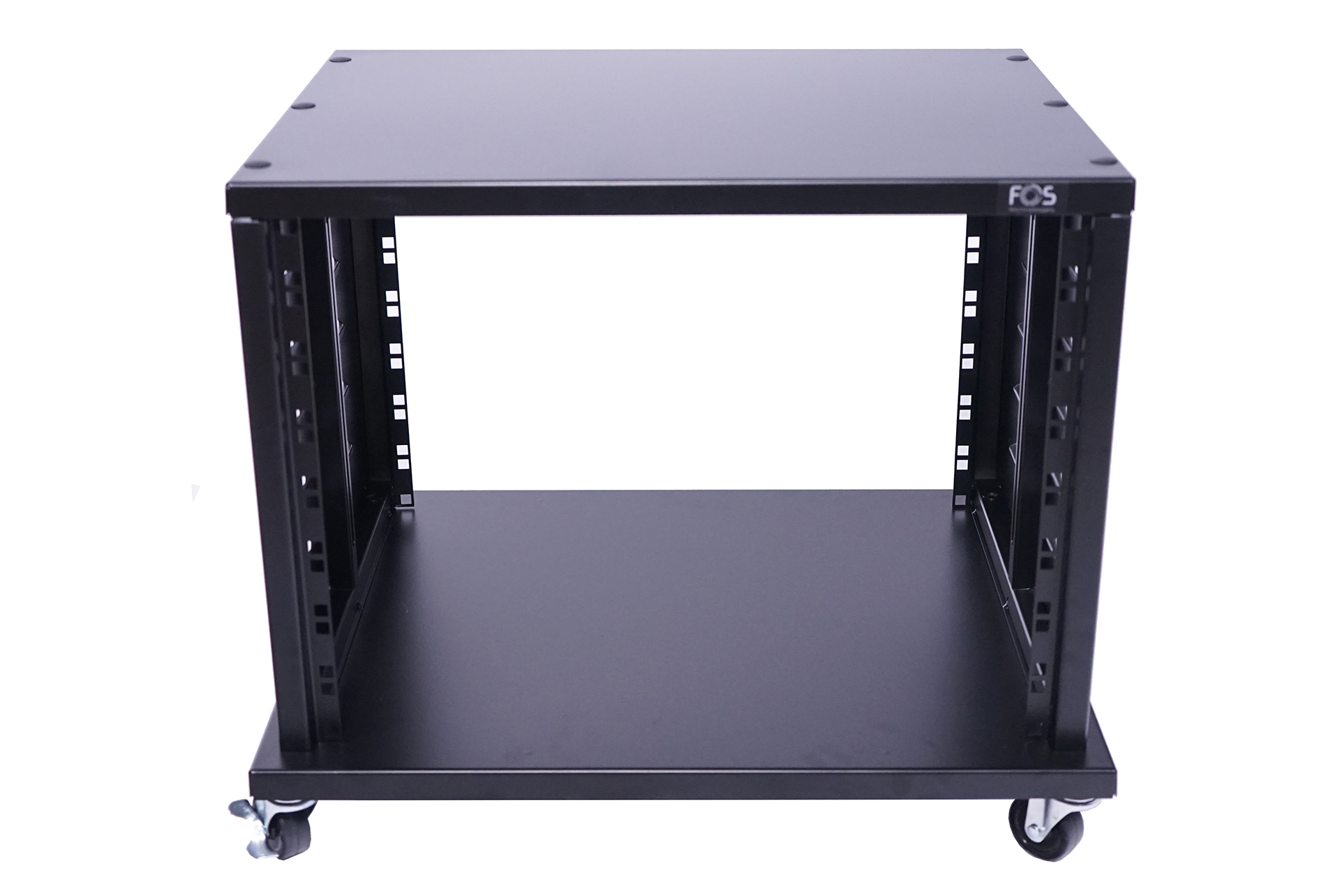 Professional 8U installation Rack, 19″ format, robust steel design, Installation depth: 40 cm, base size 56x46cm, top size 53,5×40,5cm, Includes heavy duty brackets on both sides of the middle guide rails of the inner walls,4 Stable casters, installation height 39.7cm