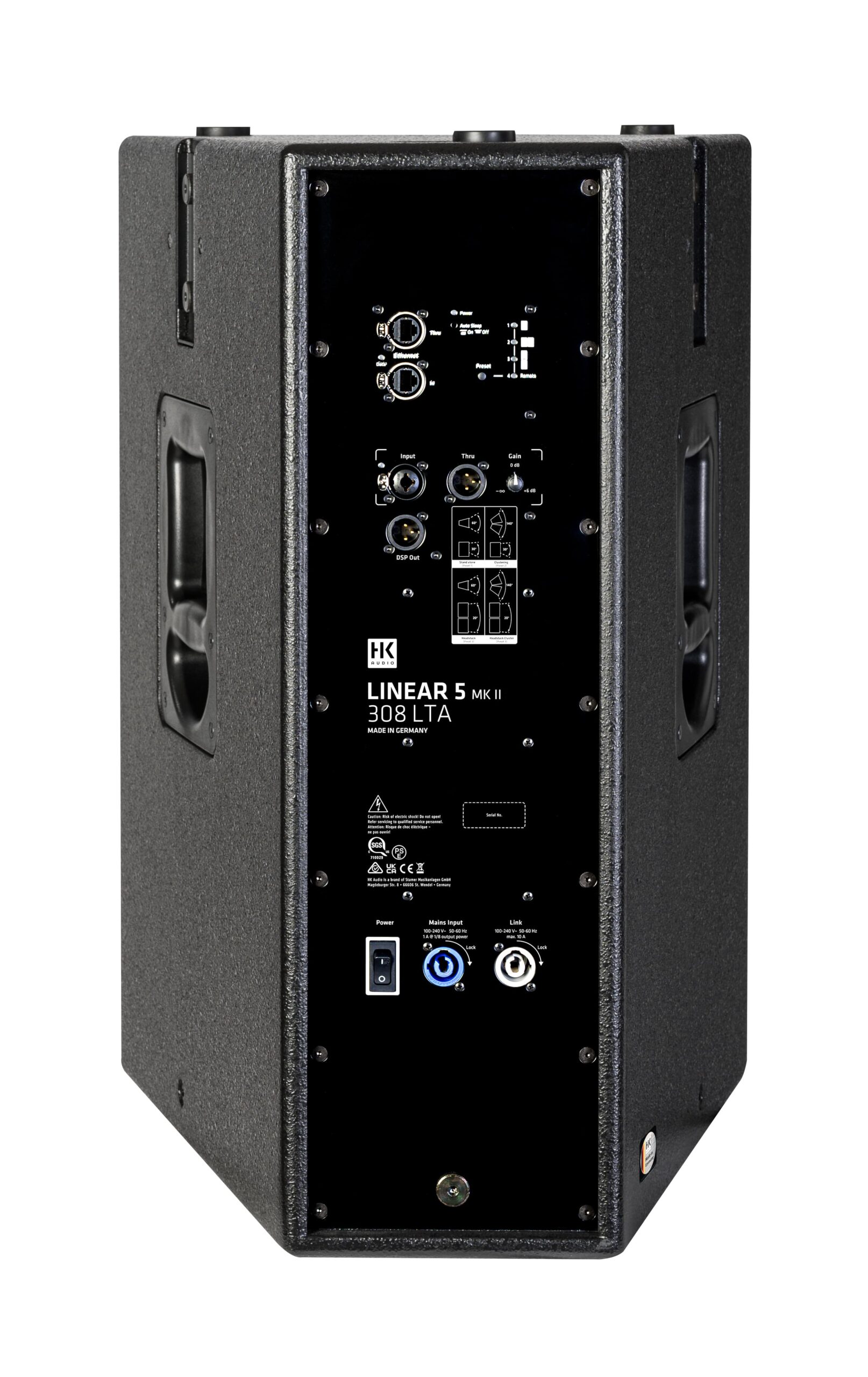 LINEAR 5 MK2 308 LTA is a highly efficient, scalable and economical long-throw active mid/high unit for large, long and wide rooms as well as open air spaces. It fills the gap between the classic point source PA and the line array in the form of a compact, horn-loaded direct sound source. The LINEAR 5 MK2 308 LTA with 1-inch HF-Driver and Multicell Transformer (MCT) offers unprecedented sound coverage depth without treble drop-off and with compact dimensions.