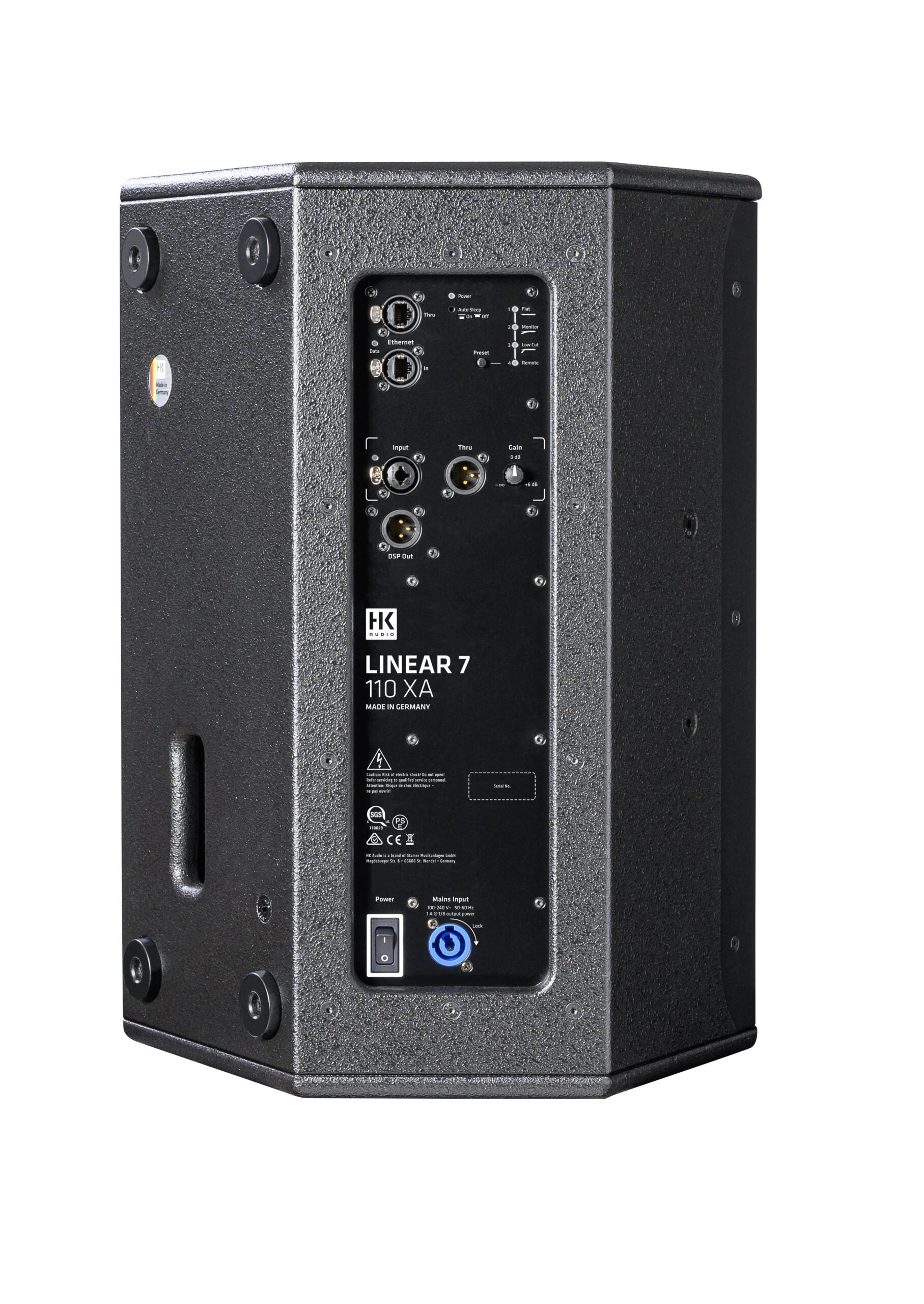 Thanks to its cabinet shape with integrated 30° slant, the LINEAR 7 110 XA active and network-compatible multifunctional speaker is also suitable for use as a transverse stage monitor. It offers a preset optimised for use as a monitor, which compensates for the overemphasis of the low frequencies caused by contact with the ground in transverse operation.