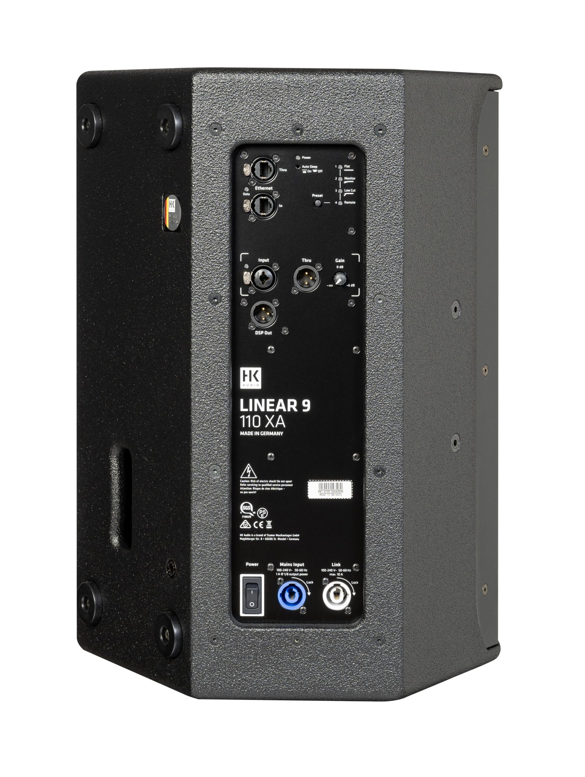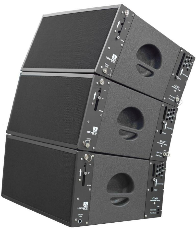 The dispersion angle of each speaker’s horn is optimised for its intended use. The LINEAR 9 110 XA 10″ speaker is equipped with an 80° x 60° wide dispersion horn for homogeneous near-field dispersion. It can be rigged either via the rigging points (steel cables or chains in combination with the AP-8 attachment point) or with the TB-28N tilt bracket.