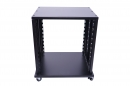 Professional 12U installation Rack, 19″ format, robust steel design, Installation depth: 40 cm, base size 56x46cm, top size 53,5×40,5cm, Includes heavy duty brackets on both sides of the middle guide rails of the inner walls,4 Stable casters, installation height 56.7cm